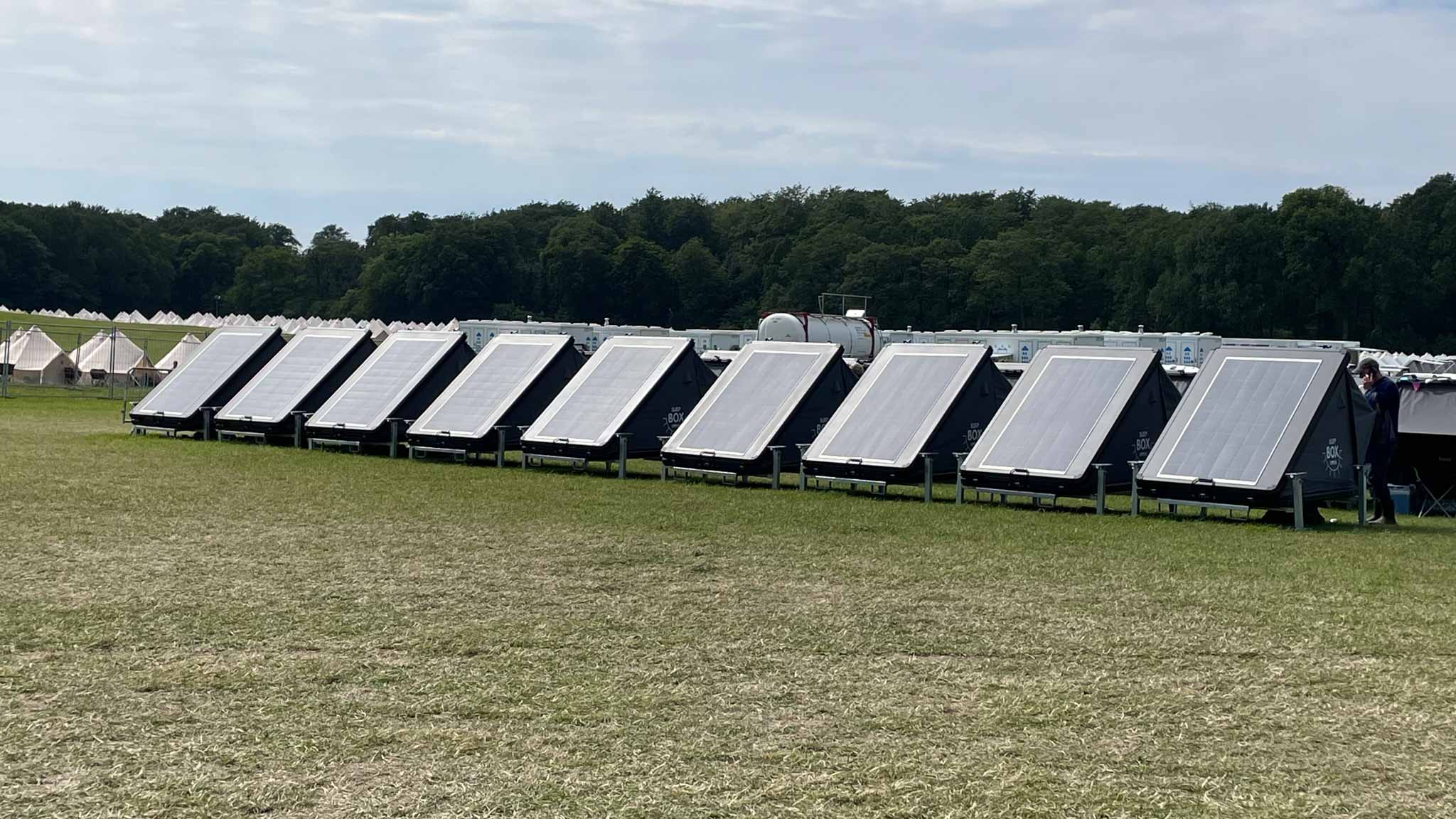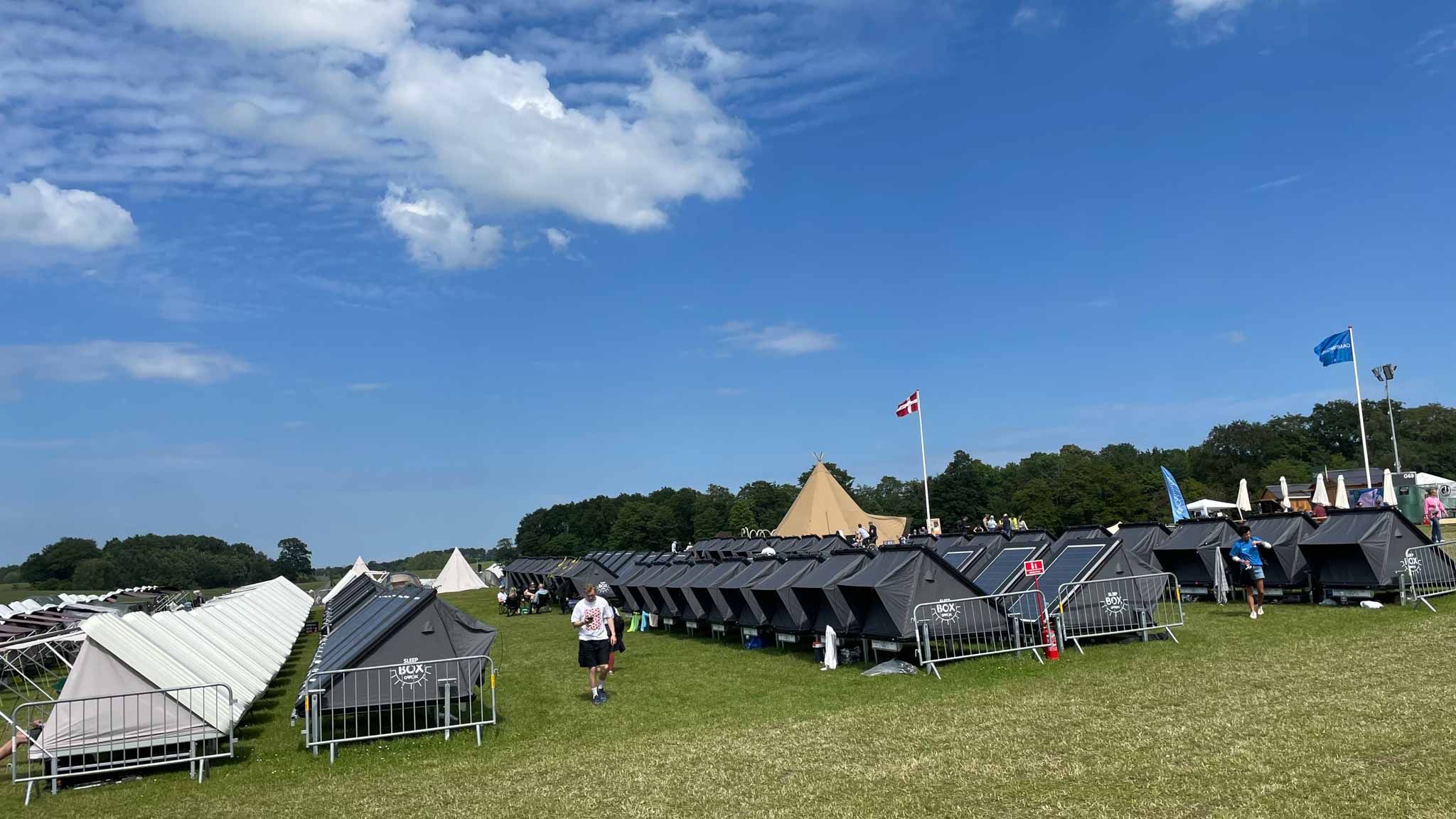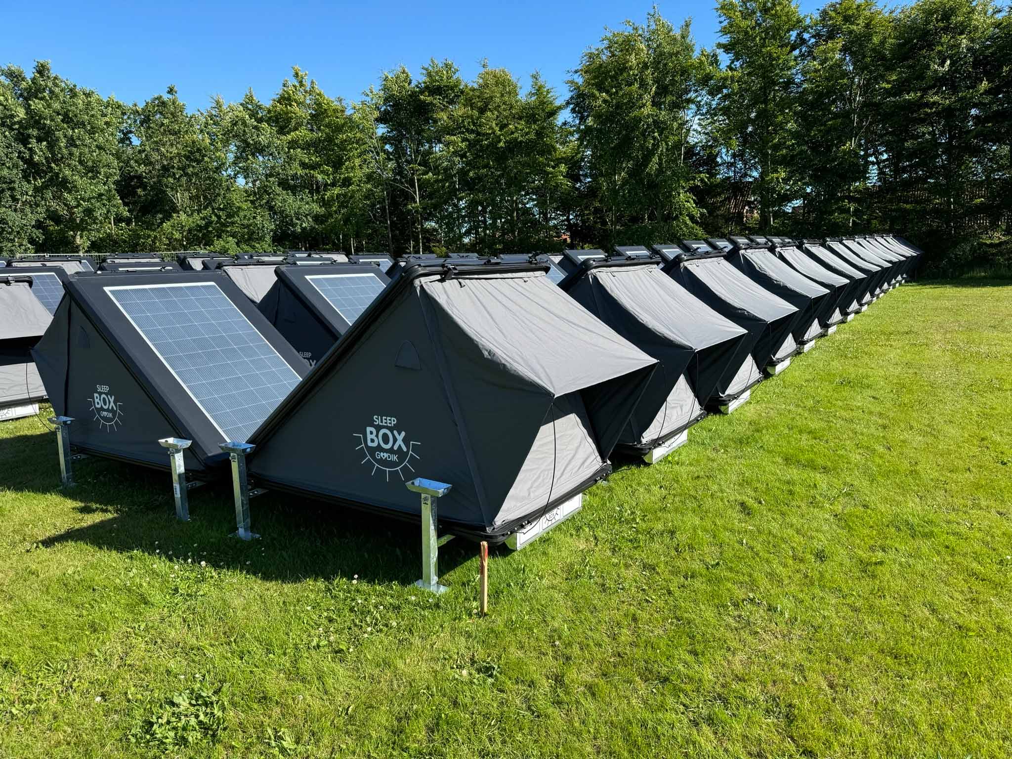 Inklusiv en skummadras til 2 personer, bagagenet, LED-lys og lockbox. Solceller på taget driver en powerbox med 12V USB-udtag, og det justerbare stativ sikrer plan liggeflade og nem stabeltransport. Perfekt til festivaler og events.
