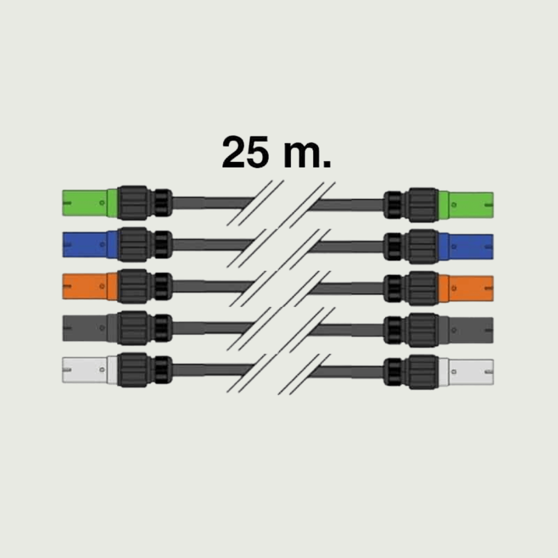 25 meter 400V 120 mm² 5 stk. enkeltleder, PowerLock stik han til hun.