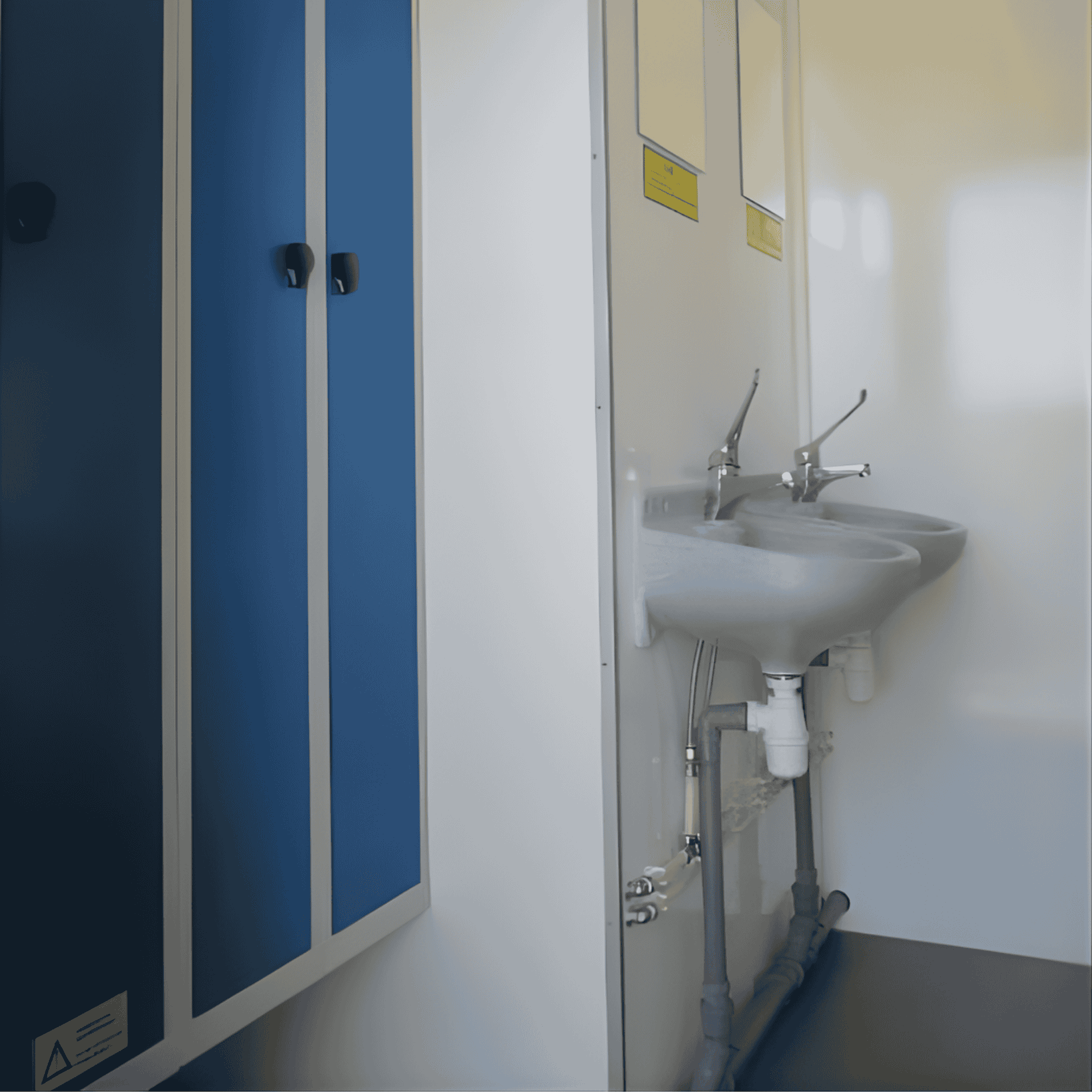 Miljøvognen er opdelt i to zoner: en beskidt zone og en ren zone, adskilt af brusekabinen, som sikrer en effektiv og kontrolleret overgang mellem arbejdstøj og rent tøj.