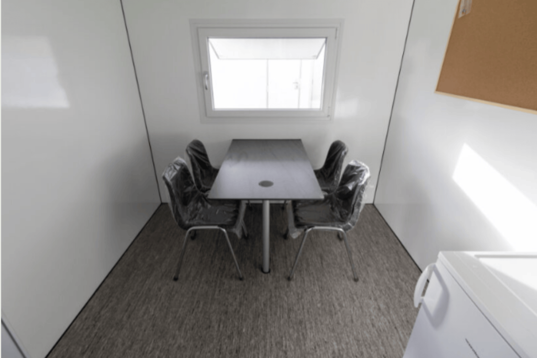 Her er plads til fire personer med separate rum til ophold, omklædning og bad.