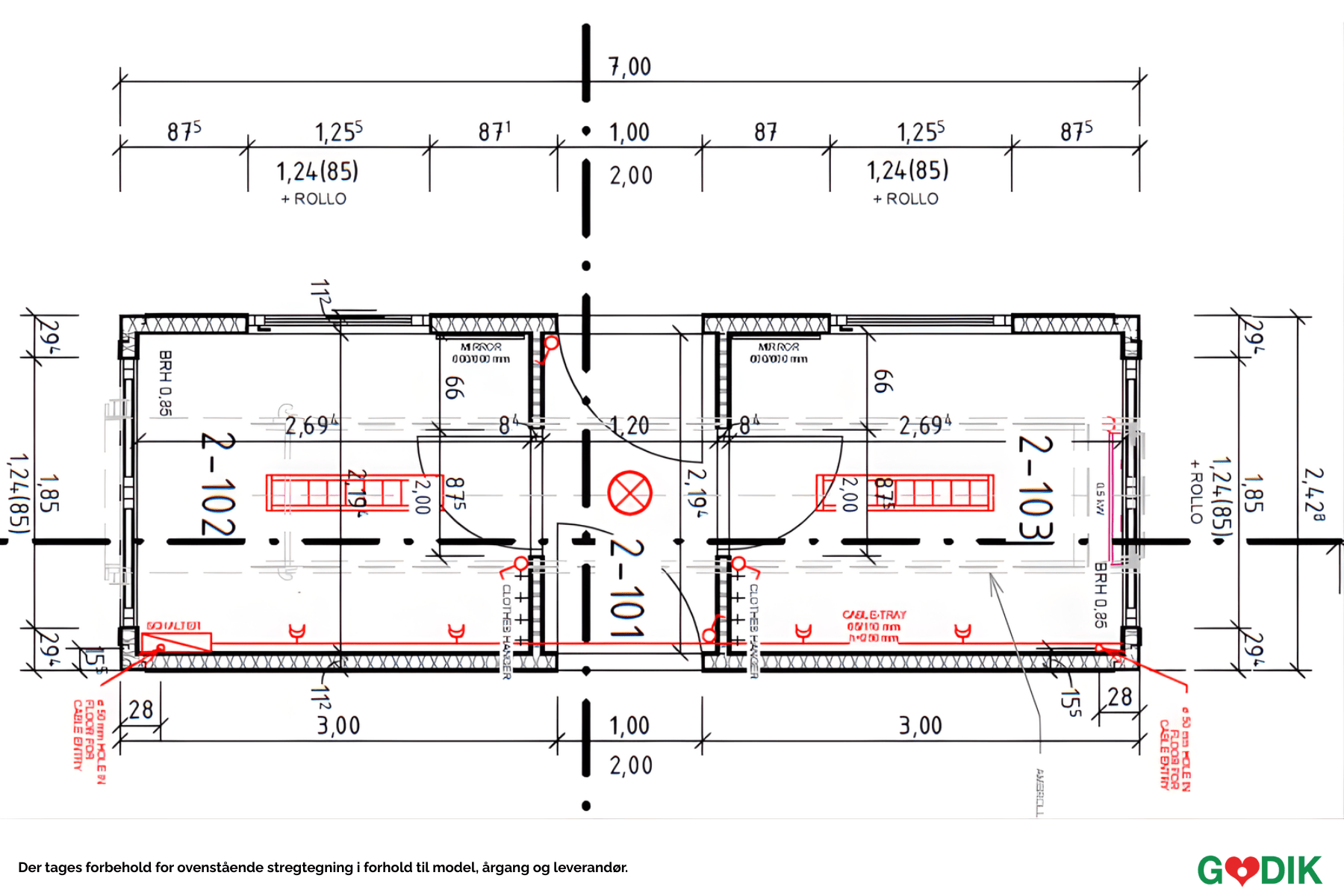 7 m. langt kontormodul med 2 rum