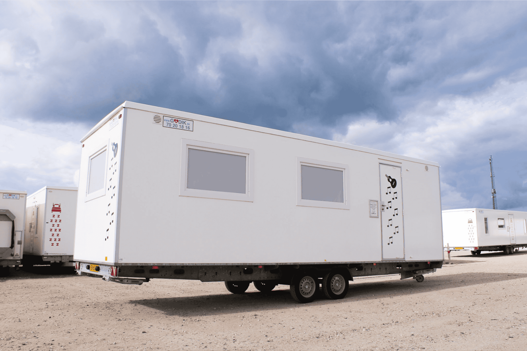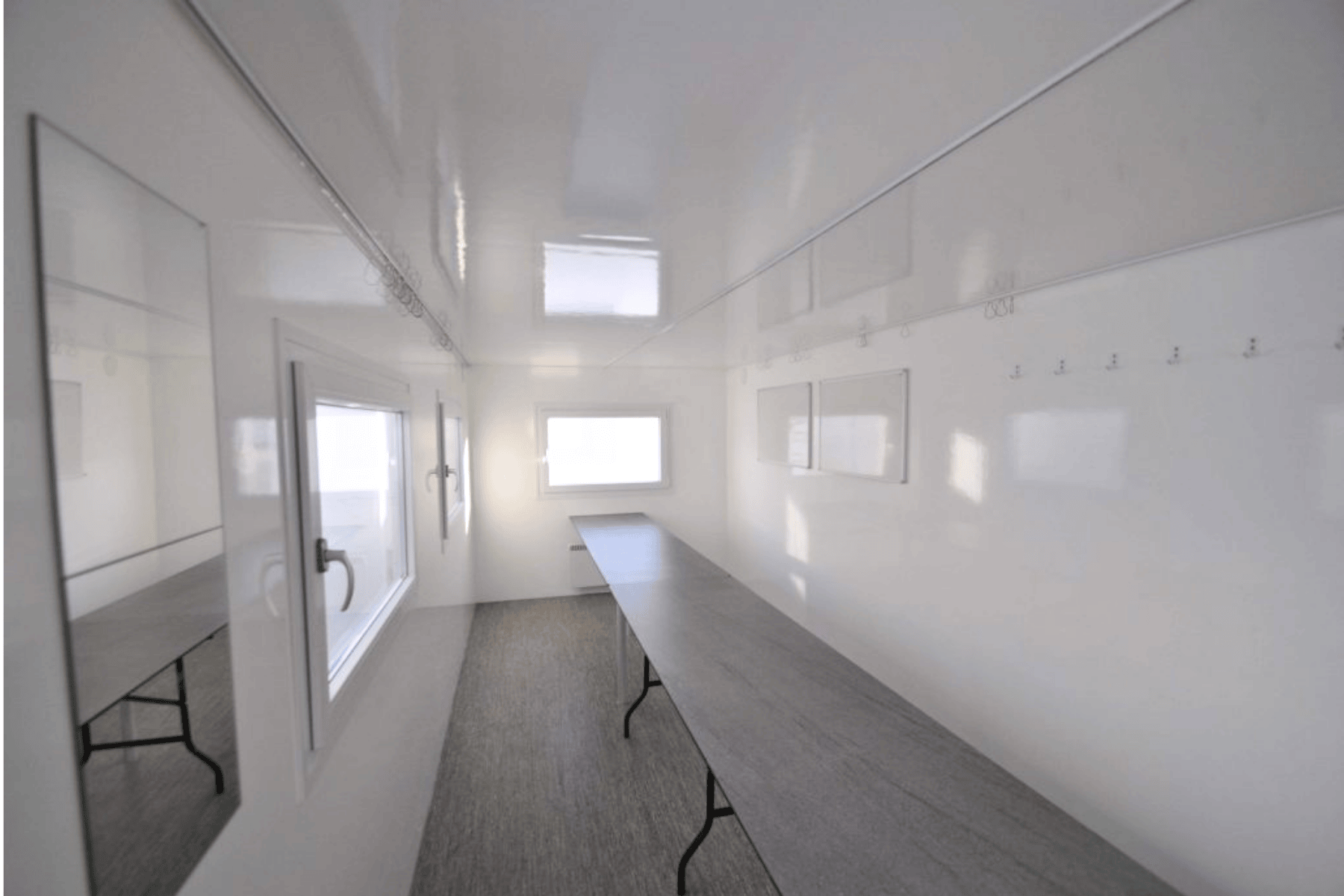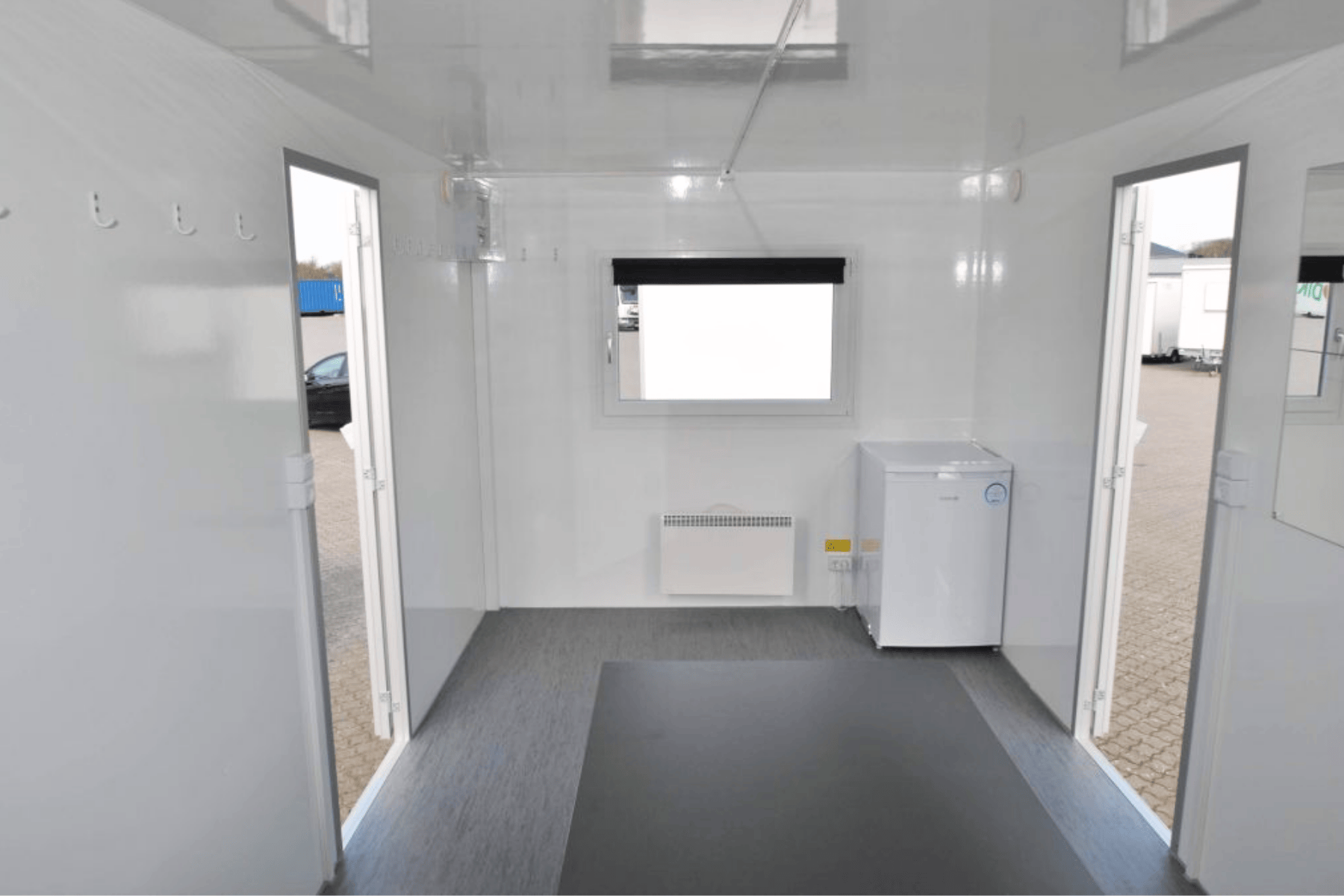 Stor kontorvogn med ét åbent rum til op til 16 personer. Perfekt til byggepladser eller midlertidig administration.