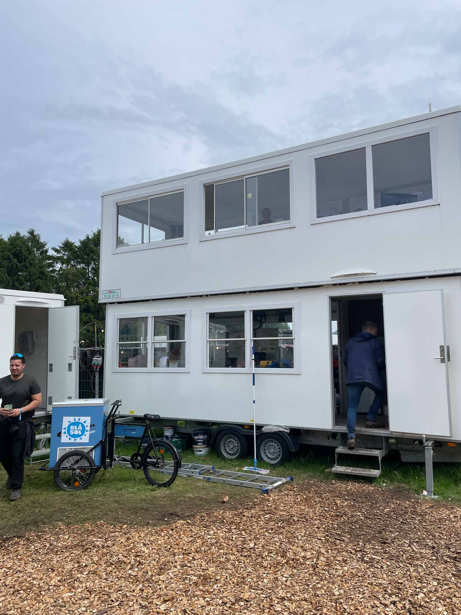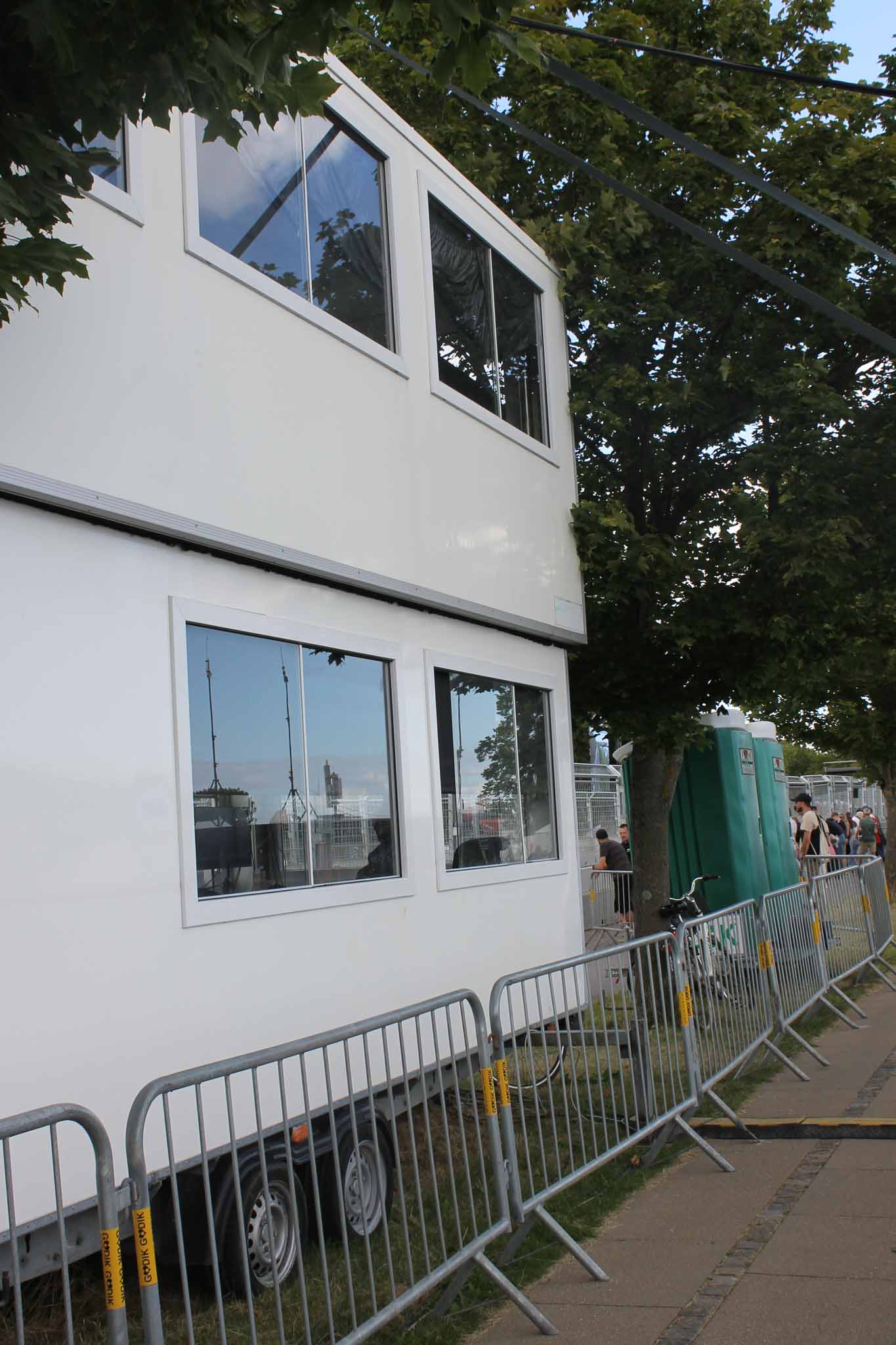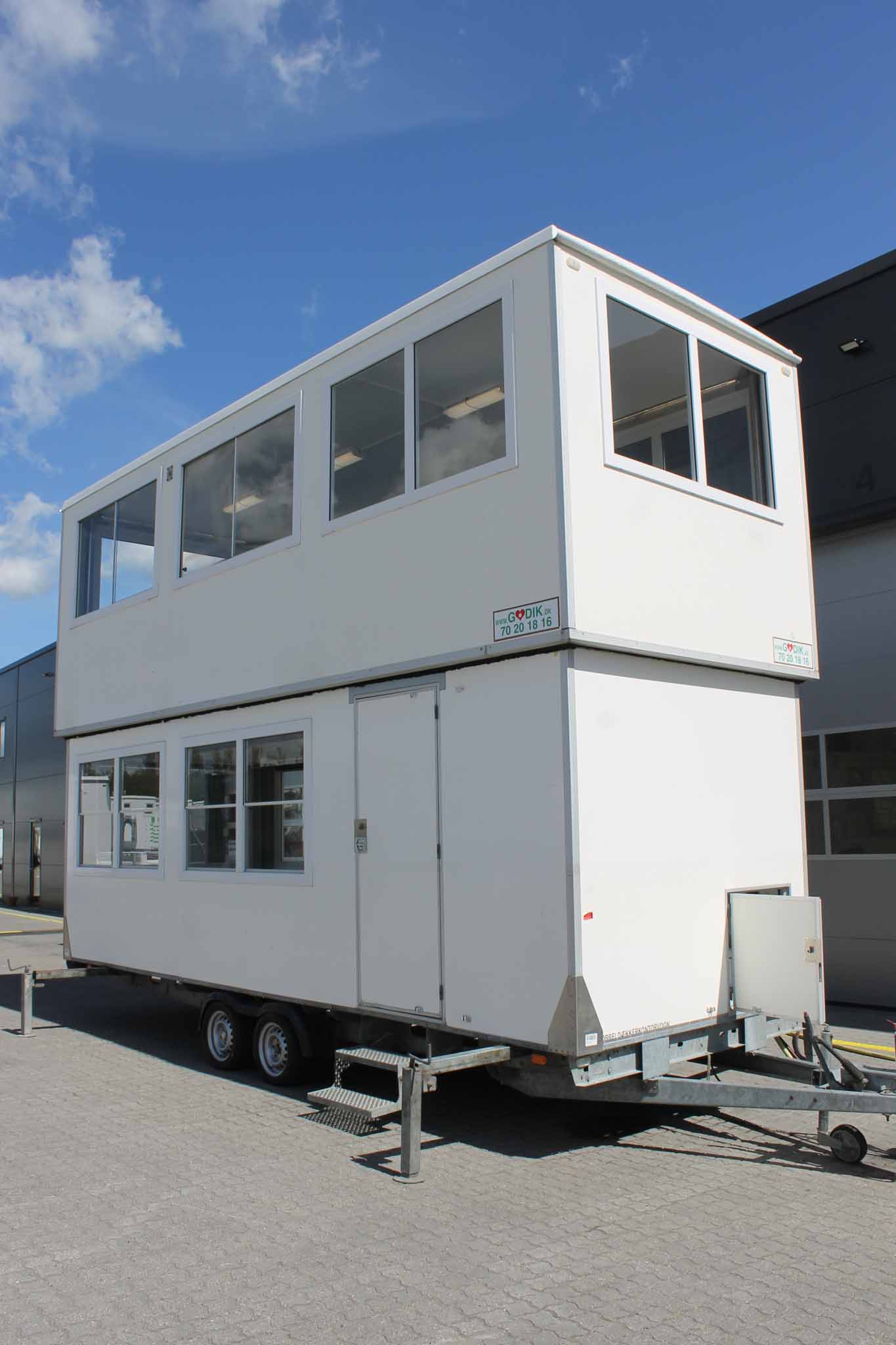 To etagers / dobbeltdækker kontorvogn med stor kapacitet og fleksibel indretning. Giver overblik over pladsen ved store projekter og events. Oplagt til festivaler, grand prix og større events