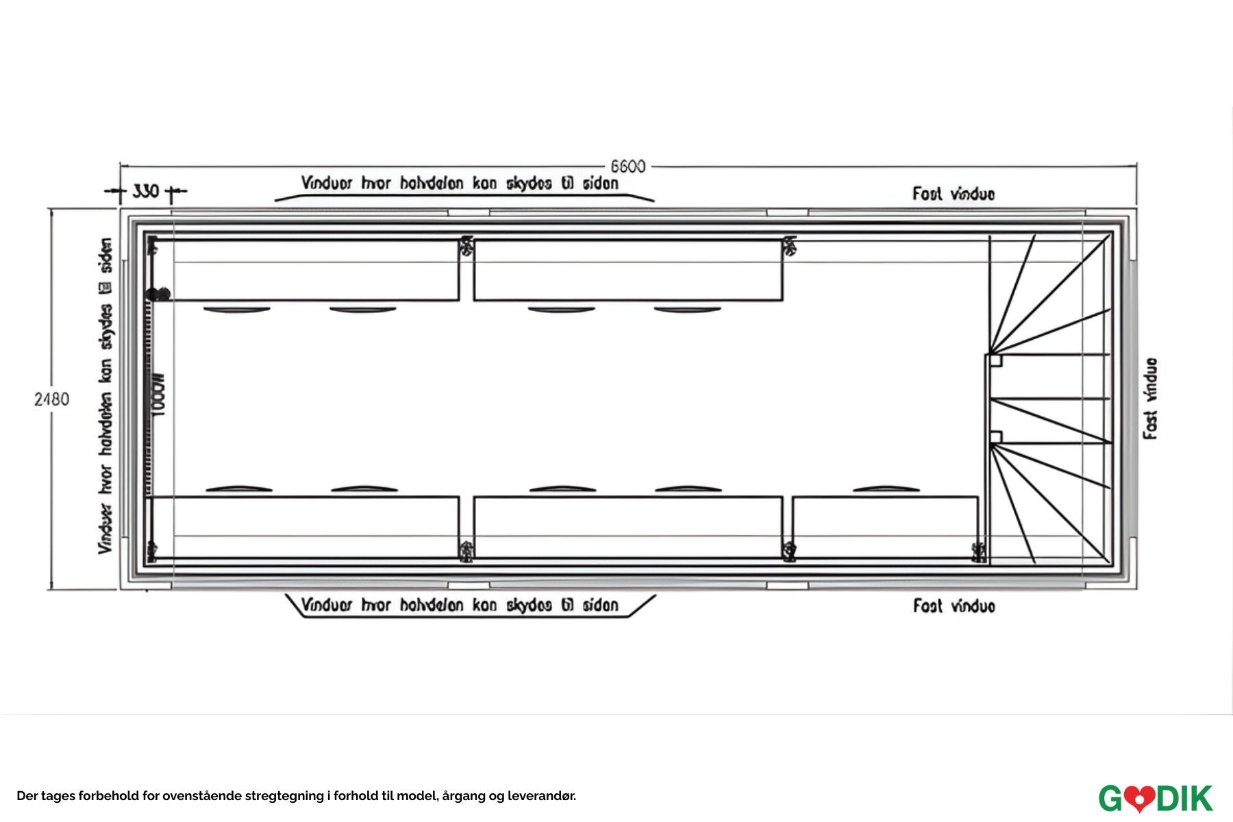 Mål udslået: Højde: 520, Længde: 660, Bredde: 250 cm.
