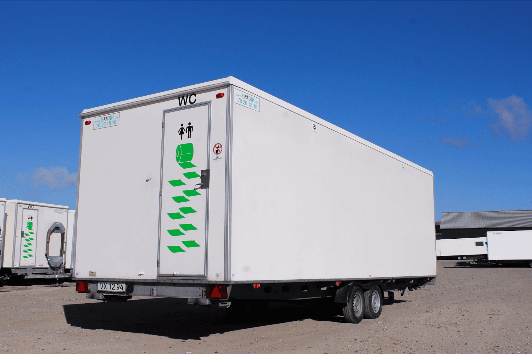 Toiletvogn med standard vandskyllende toilet. u. tank/til tilslutning. Kapacitet på ca 250 besøg i timen.