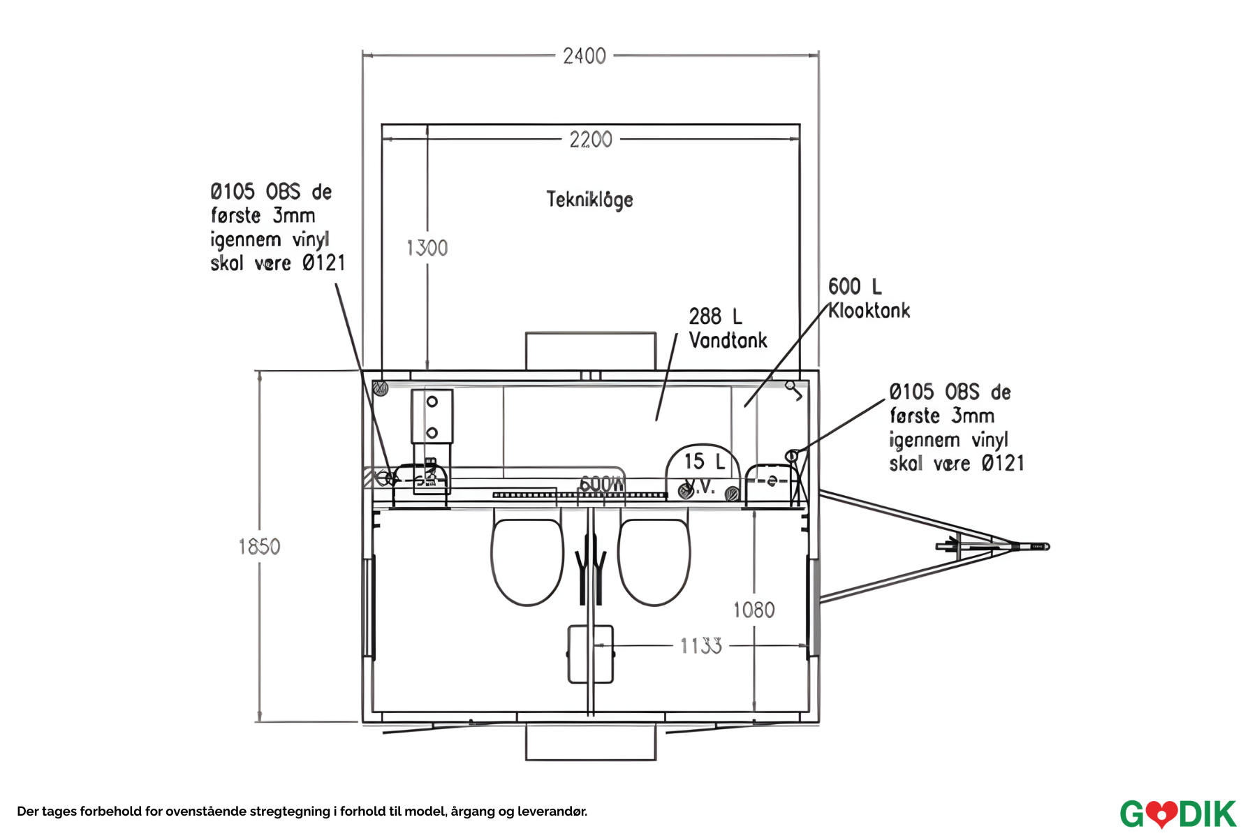 Mobil toiletvogn med to vacuum toiletter og integreret tank – ideel til mindre events med behov for midlertidige faciliteter. Det lave vandforbrug og den høje hygiejne gør den driftssikker og nem at vedligeholde. Godik leverer og servicerer efter aftale.
