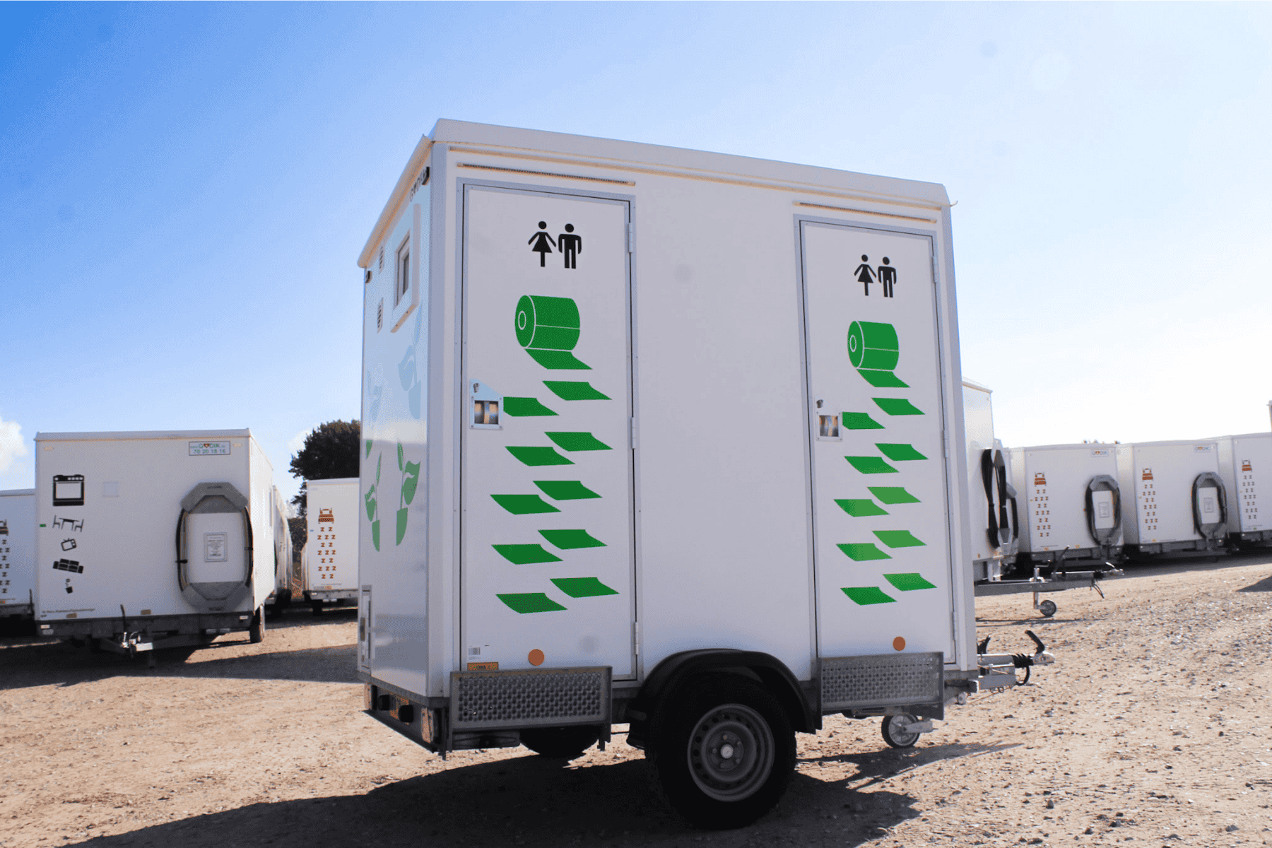 Toiletvogn m. tank og 2 vacuum toiletter. Tankkapacitet på ca. 600 besøg. Kapacitet på cirka 50 besøg i timen.